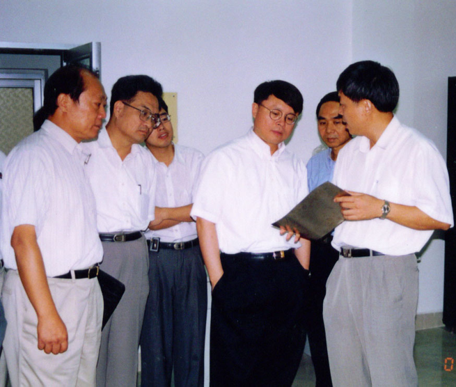 2000年時(shí)任中國(guó)科學(xué)院副院長(zhǎng)江綿恒到廣州電子所視察。