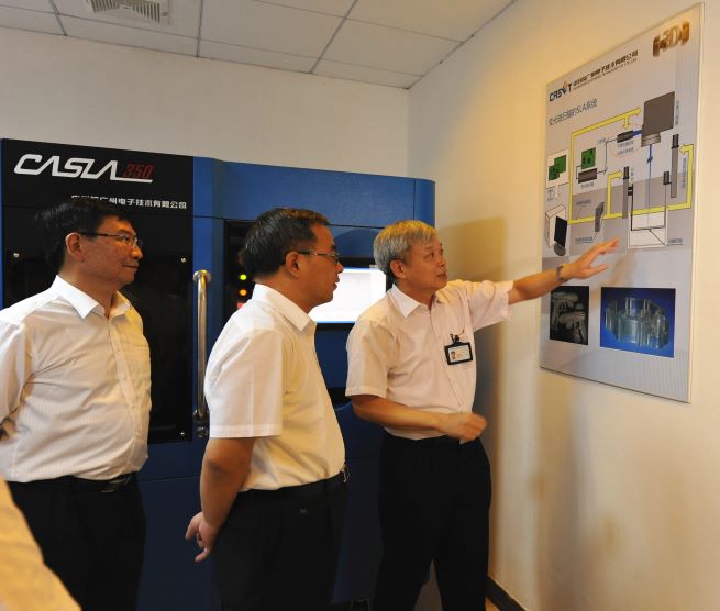 2014年時(shí)任廣州市委副書記,市長(zhǎng)陳建華調(diào)研廣州電子。